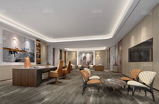 本案擁有茶座,休息區,辦公區,娛樂區等功能分區,多種風格表現要統一格調,這對設計師的功底考驗尤深。整體采用大理石與原木色為主色調,勾勒出端莊與時尚的線條美。開放性與和私密性之間作出選擇。有的公司強調溝通與協調,有的公司強調信任授權,有的強調獨立工作,我們平面設計要求滿足客戶管理的便利性。